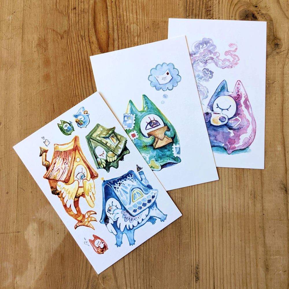 A bundle of three postcards. Put them on your wall, send them to a friend.