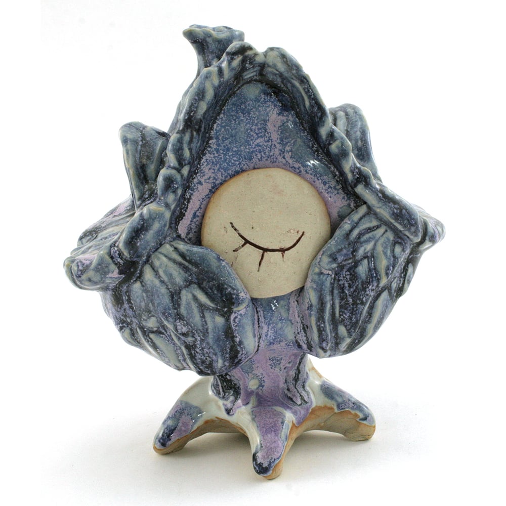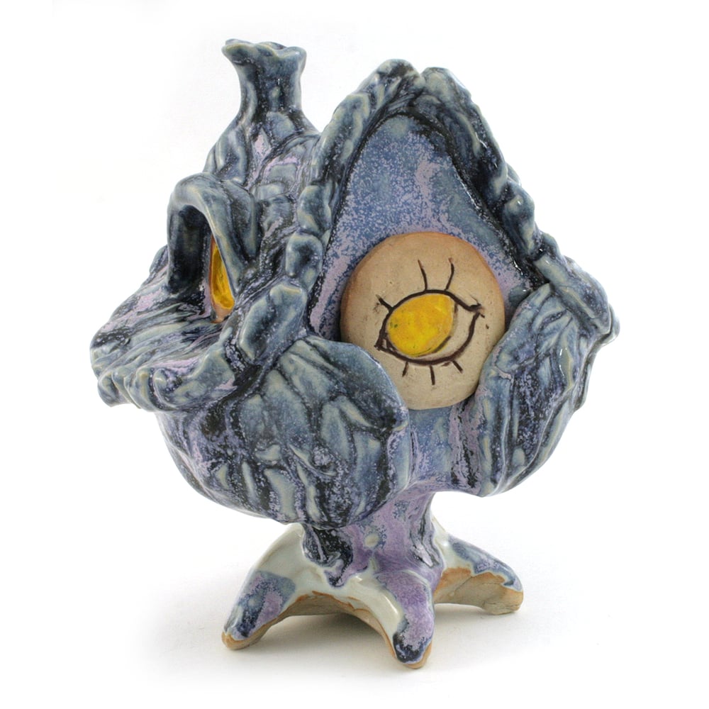 This fellow's face is removable and reversible, blinking between a closed and open eye. The creature is hollow behind their face for storage of tiny objects.