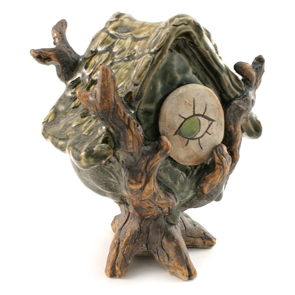 Their face is removable and reversible, blinking between a closed and open eye. The creature is hollow behind their face for storage of tiny objects.
